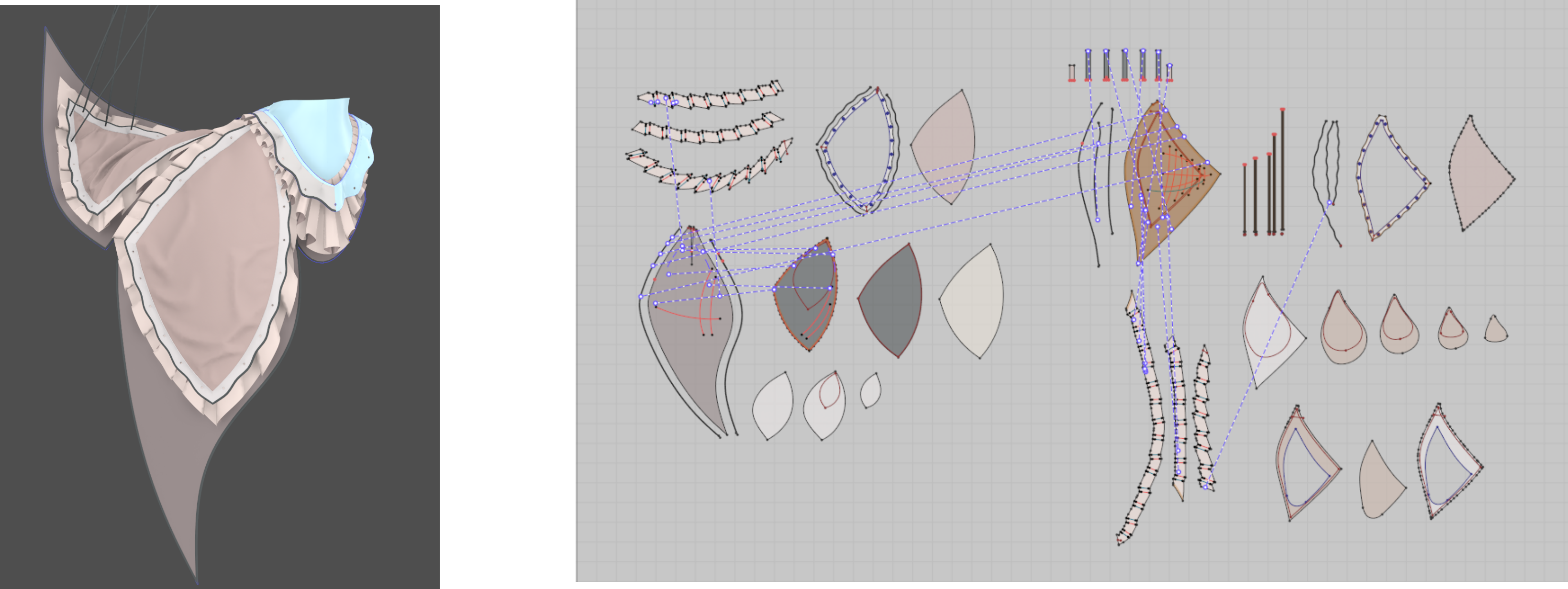 Marvelous Designer, fully simulate-able, custom pattern making.